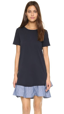 I almost bought this dress last year but it sold out. It is now back in two new colors. I like the fun spin on a shirt dress with the ruffle at the bottom.