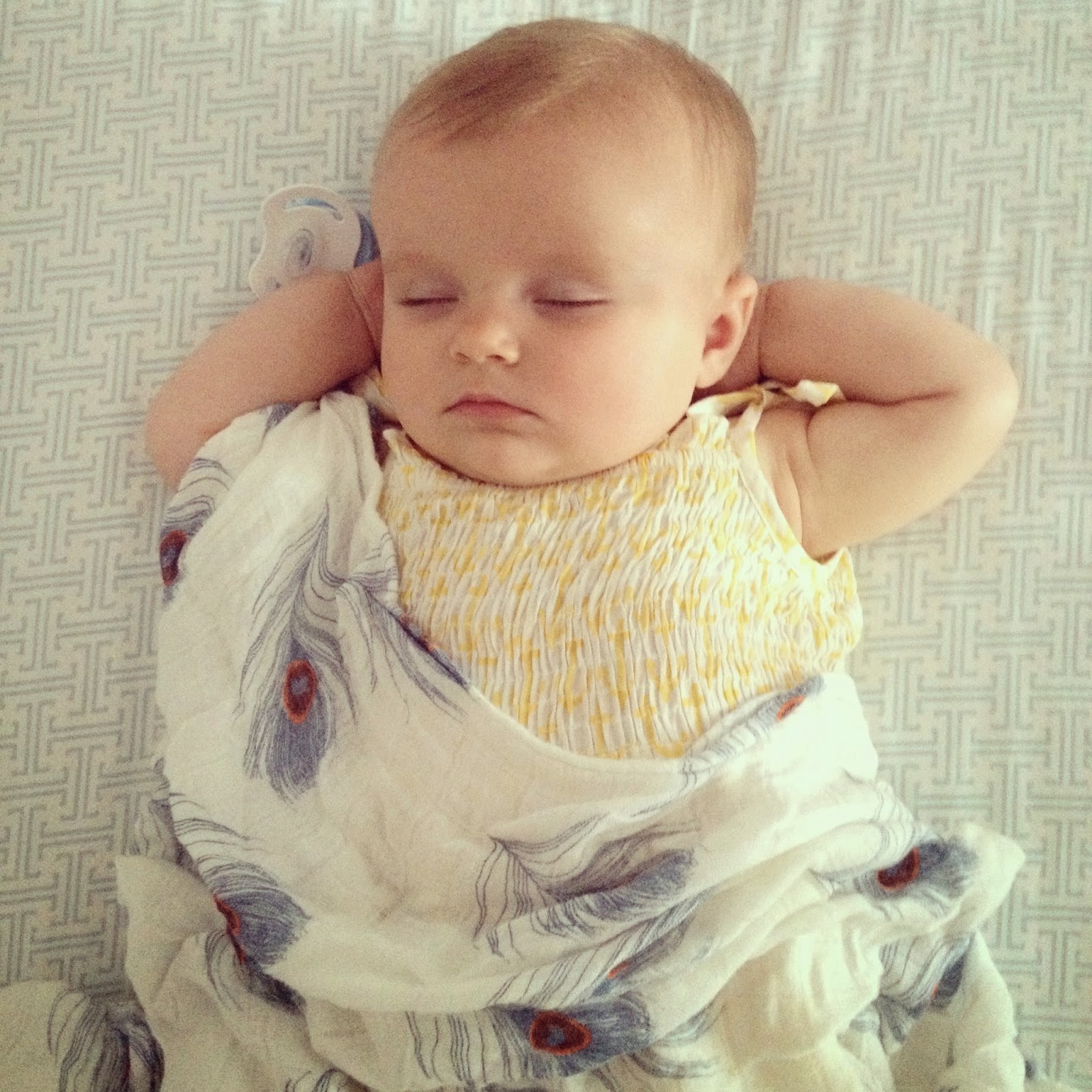 I have to ask, out of curiosity, as I have a daughter only a couple months younger than Frances – do you swaddle her and she breaks out of it? Or do you just tuck the blanket around her to keep her from getting chilled? I only ask because I'm at such a crossroads with the swaddle – my baby busts out of it during her sleep but seems to still need it. I've got to figure out what to do.