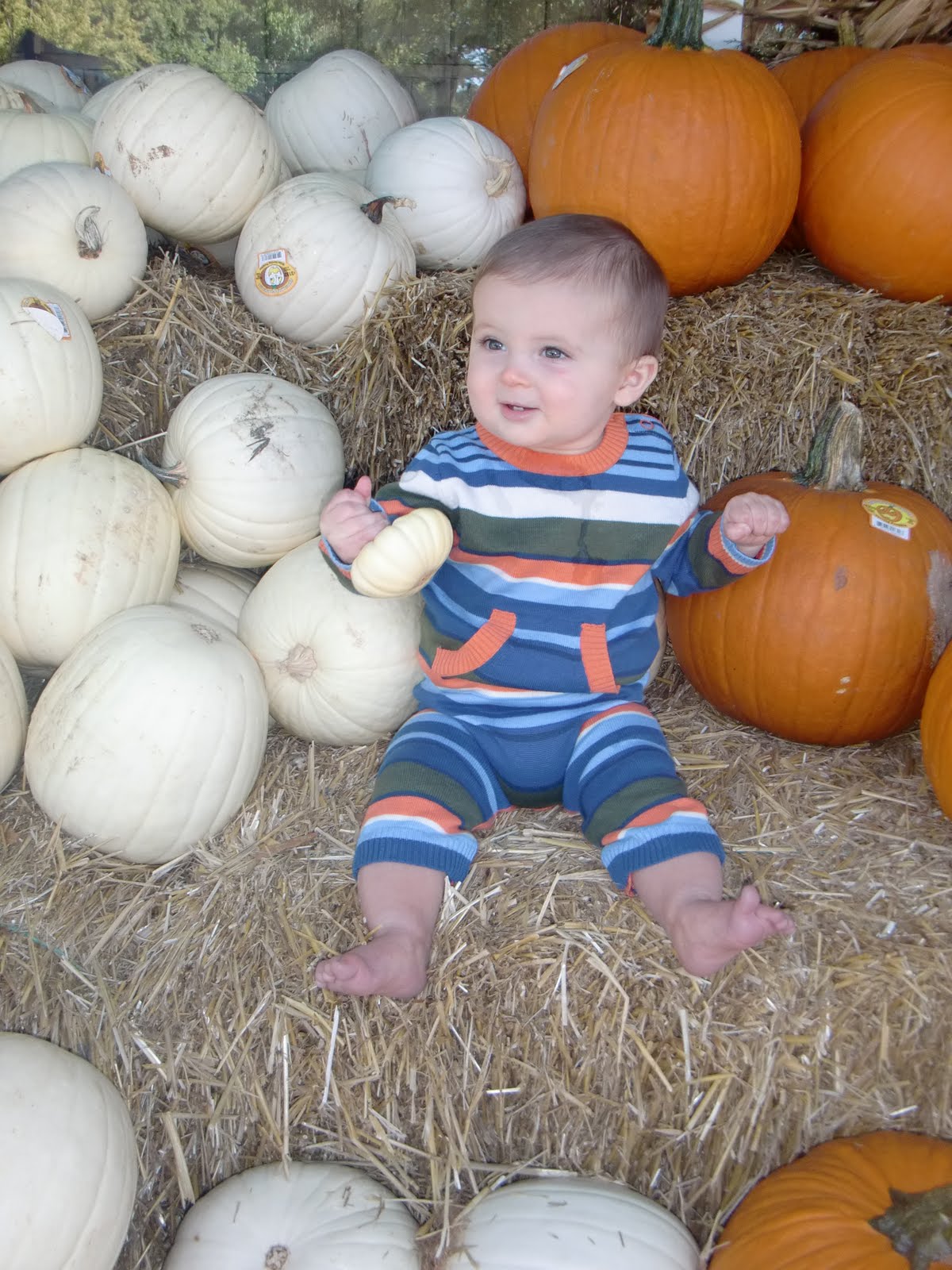 He is the cutest pumpkin in the bunch! It's only the times you have them all dressed up w/ camera in hand that they are so not in the mood to take a pic. Sometimes that's cuter, though…not that you think it at the time…but later even their "off" pics are really endearing to you.