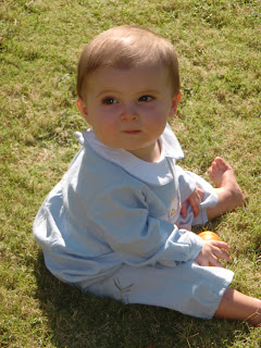 Okay, so your little man is just about the same age as mine!! š Mine will be 8 months on Nov 5. Aren't they the best?!