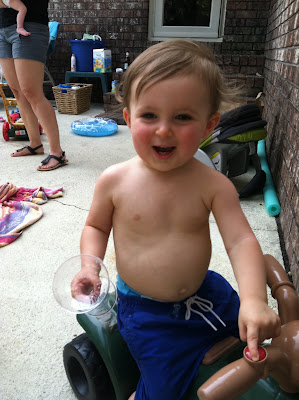 We are trying to teach Sterling the importance of not drinking and driving but I don’t think he gets it. This party animal would not set Mommy’s wine glass down!