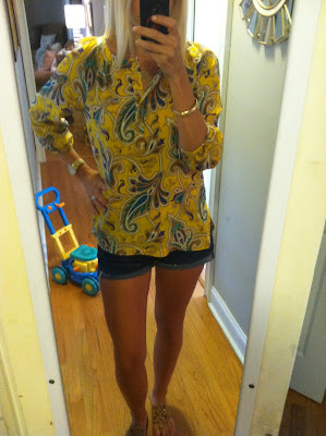 love the outfit! yellow is pretty on you. and hot shorts! wooo! sterling is so freaking cute. when can he start modeling?