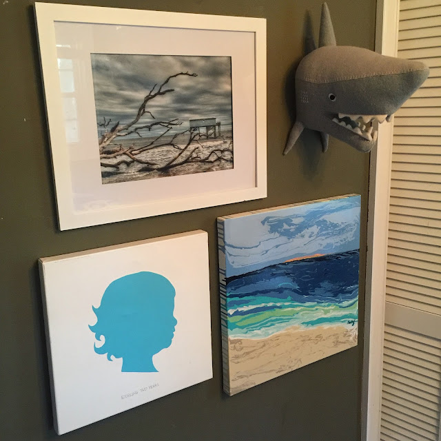 We own two pieces by Nan. Our most recent piece is a painting I had her to do for Sterling’s room. I am still trying to tweak his room and make some updates since I really have not done much to it since he was 2.5 and moved into a big boy bed. Next up is a fresh coat of paint for the walls.