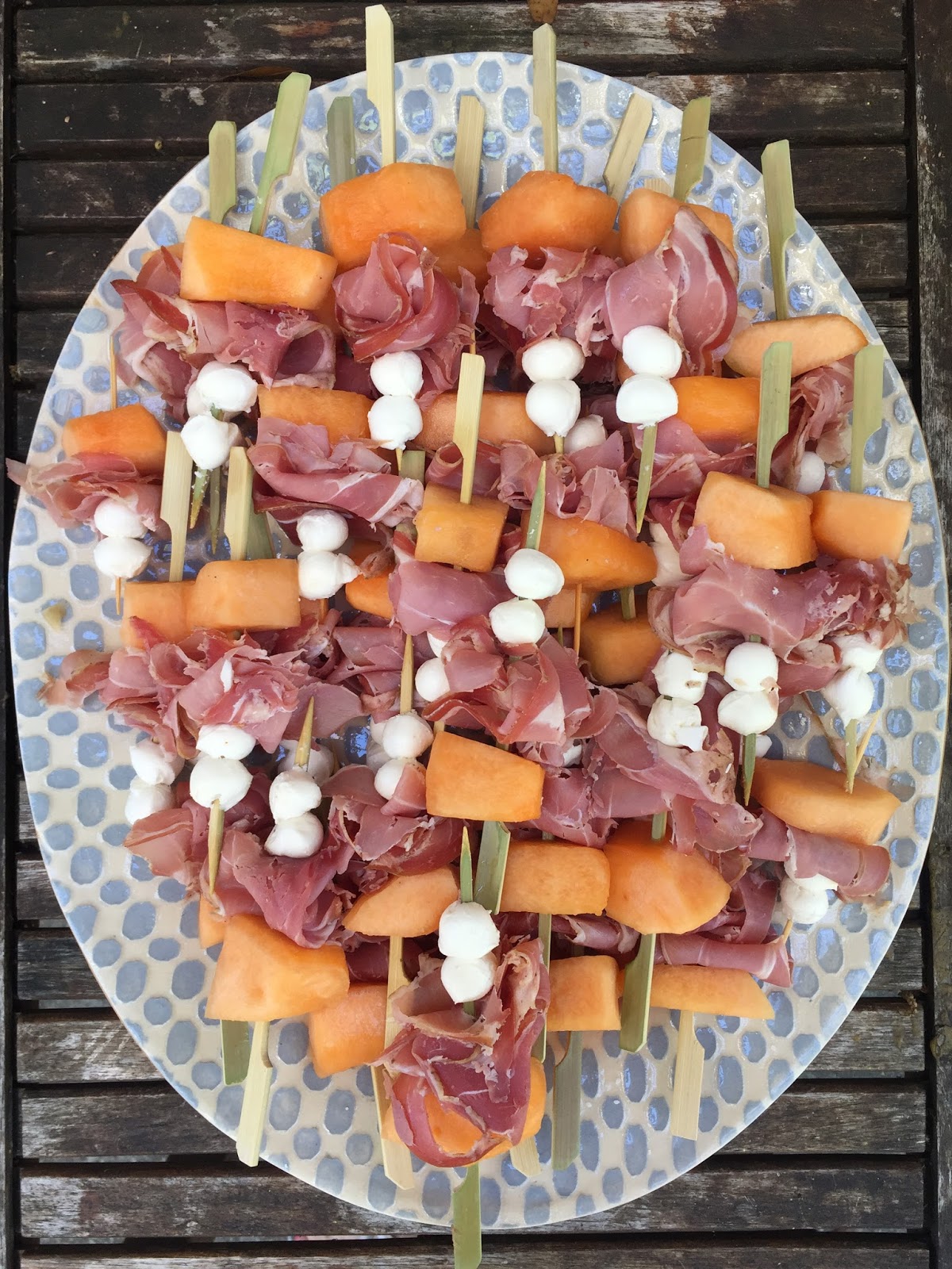 These are pretty self explanatory. Just skewer cantaloupe, prosciutto, and mozzarella. I will say if you can get the prosciutto fresh sliced from the deli it makes a big difference. It tastes so much better than the packaged kind. Optional you can drizzle with olive oil and balsamic vinegar.