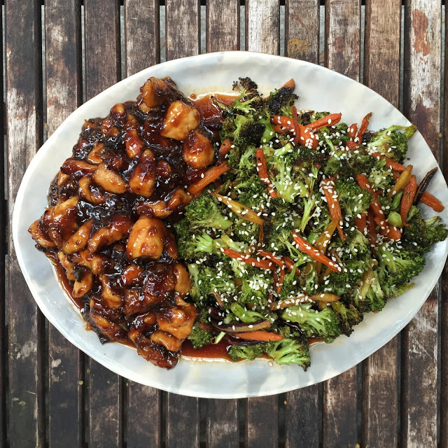 The prep work took a little bit of time but all the stuff for the chicken can be cut up ahead of time and then you can just toss it together when ready to cook. This chicken knocked my socks off. The flavors were incredible. You can really taste the fresh ginger and garlic and the brown sugar helps caramelize the chicken. It was so amazing. It really tasted like Chinese chicken but without all the MSG and weird additives. It was fresh tasting.