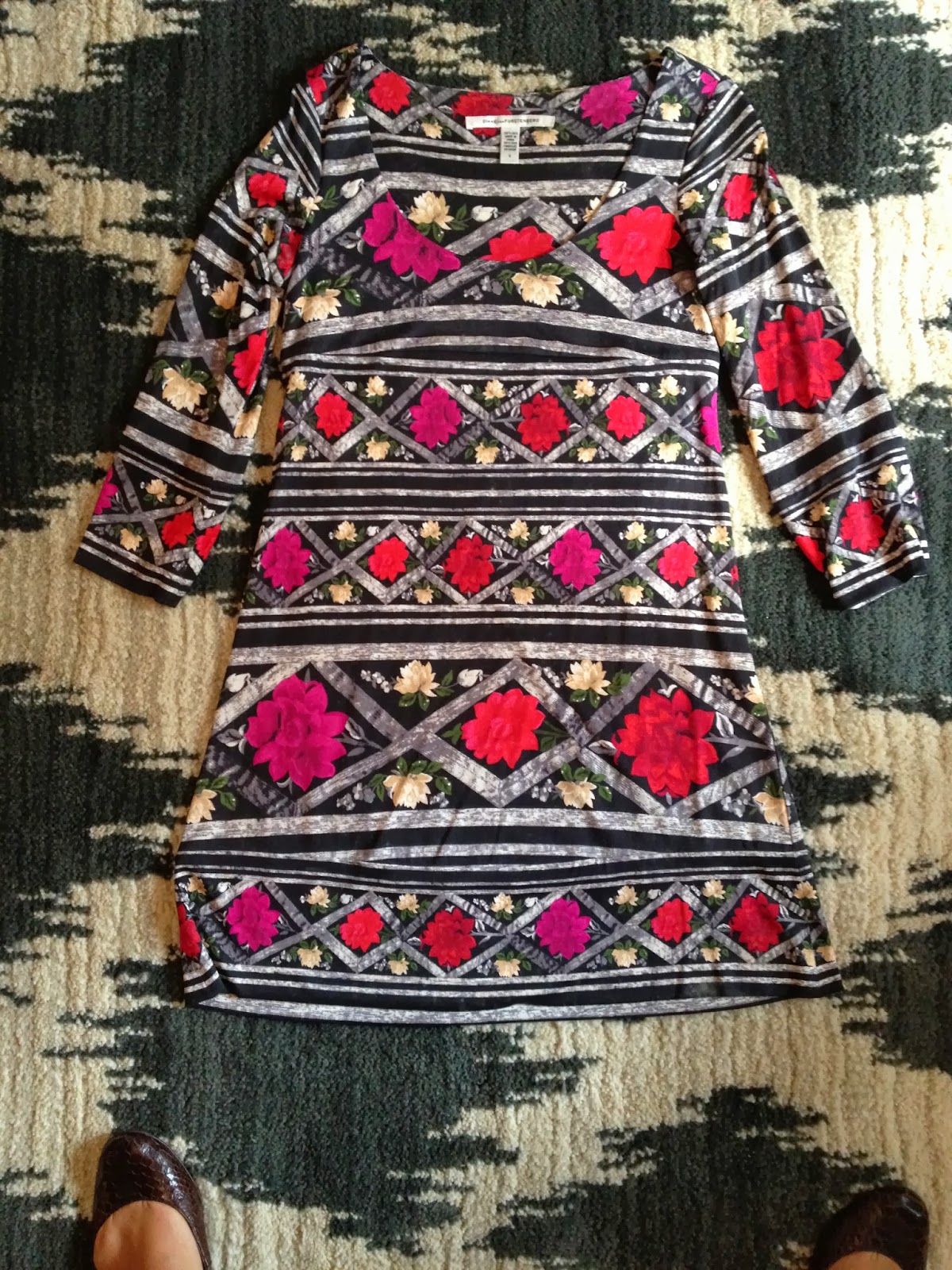 DIANE VON FURSTENBERG ROSE PRINT SHIFT DRESS