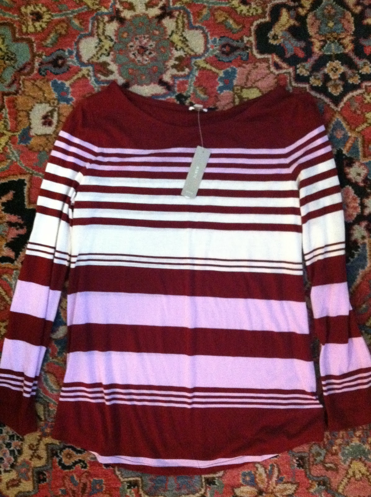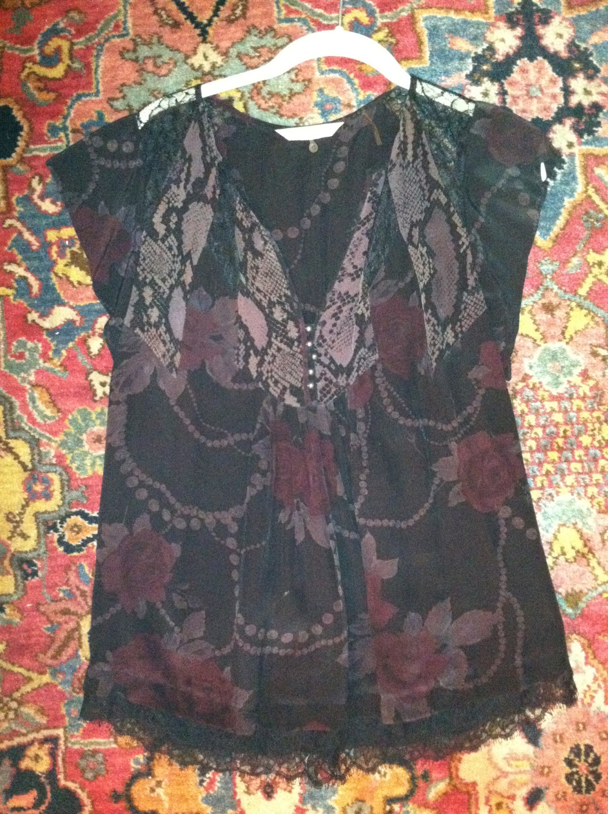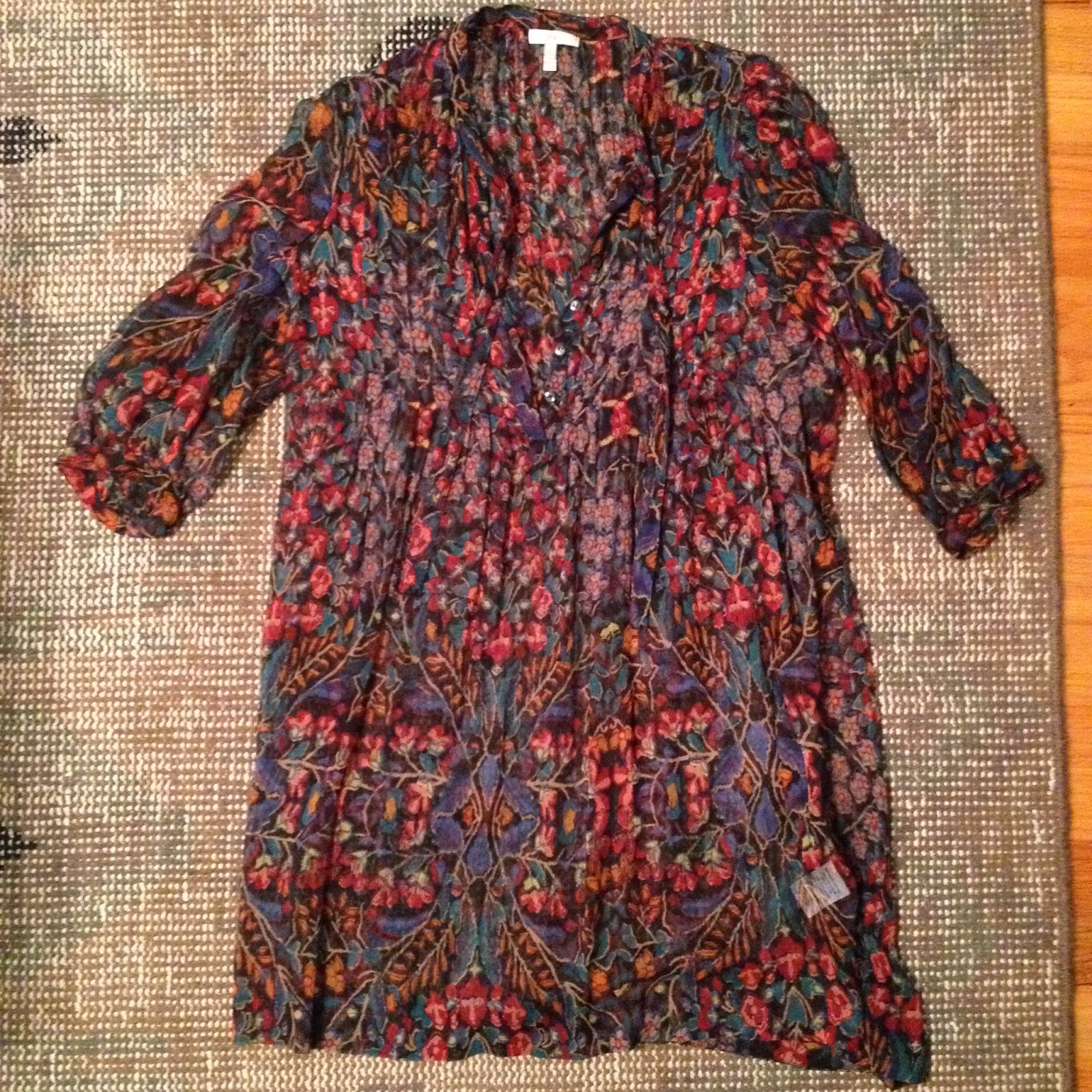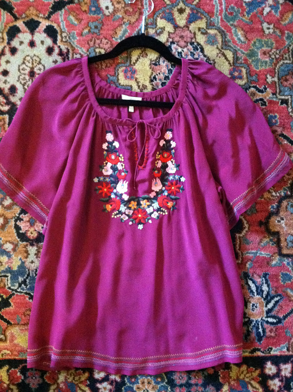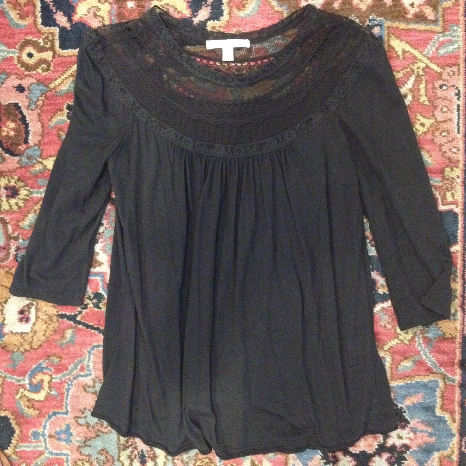 This is a great pregnant top but is a bit too loose on me now. It is sheer and needs a tank underneath