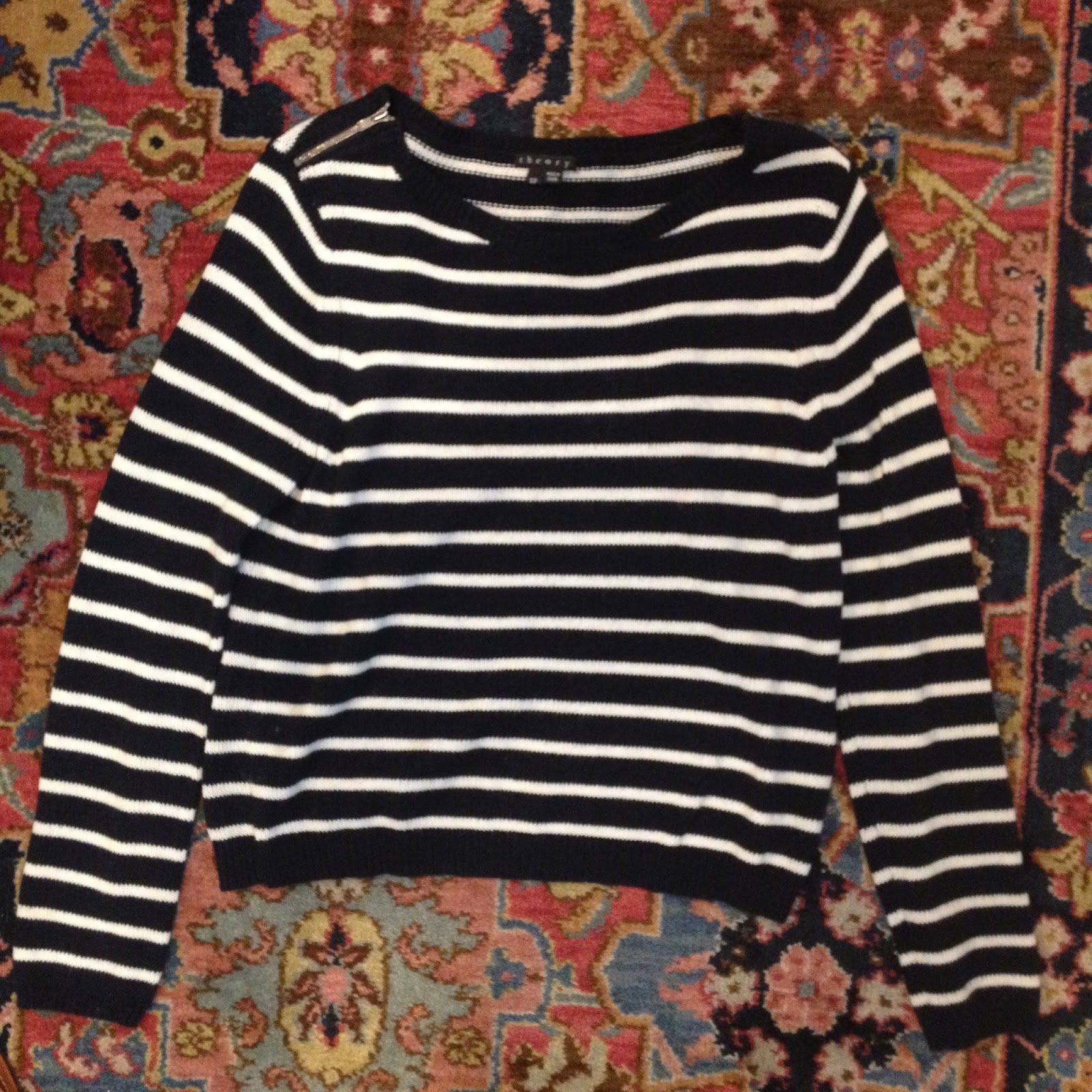 Theory Stripe Sweater with Zippers at Neck