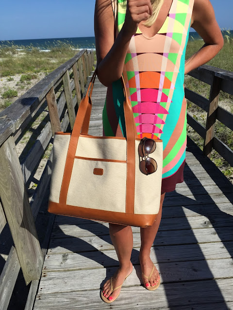 Mara Hoffman Shift Dress | Gigi New York Sag Harbor Tote c/o | Flip Flops | Waffles and Honey Necklace c/o | Sunglasses Ray Ban