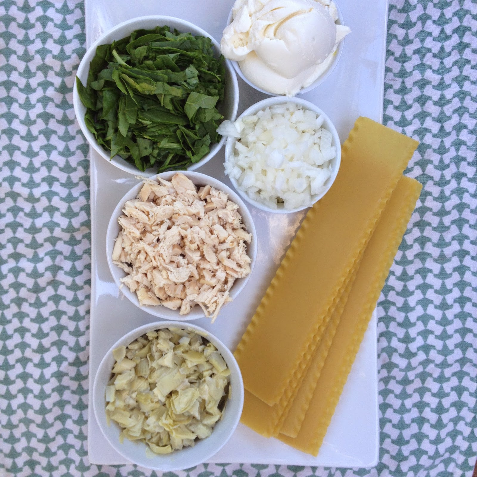 I always love a good lasgana and this recent fall like weather had me craving one even more. Lasagnas are not the easiest meal to make, they require several steps but man are they worth the extra effort. Plus you have leftovers for days. I kind of made this recipe up from a mix of lasgana recipes I found online, a hybrid if you will. It turned out awesome, even Sterling gobbled it up and I never know what he will eat. This is good with the chicken but next time I may make it with sausage instead because everything is better with sausage. Matt said he thought it could use more artichokes, I only used one can so next time I will use two cans. Otherwise it was rich, creamy and full of great flavor.