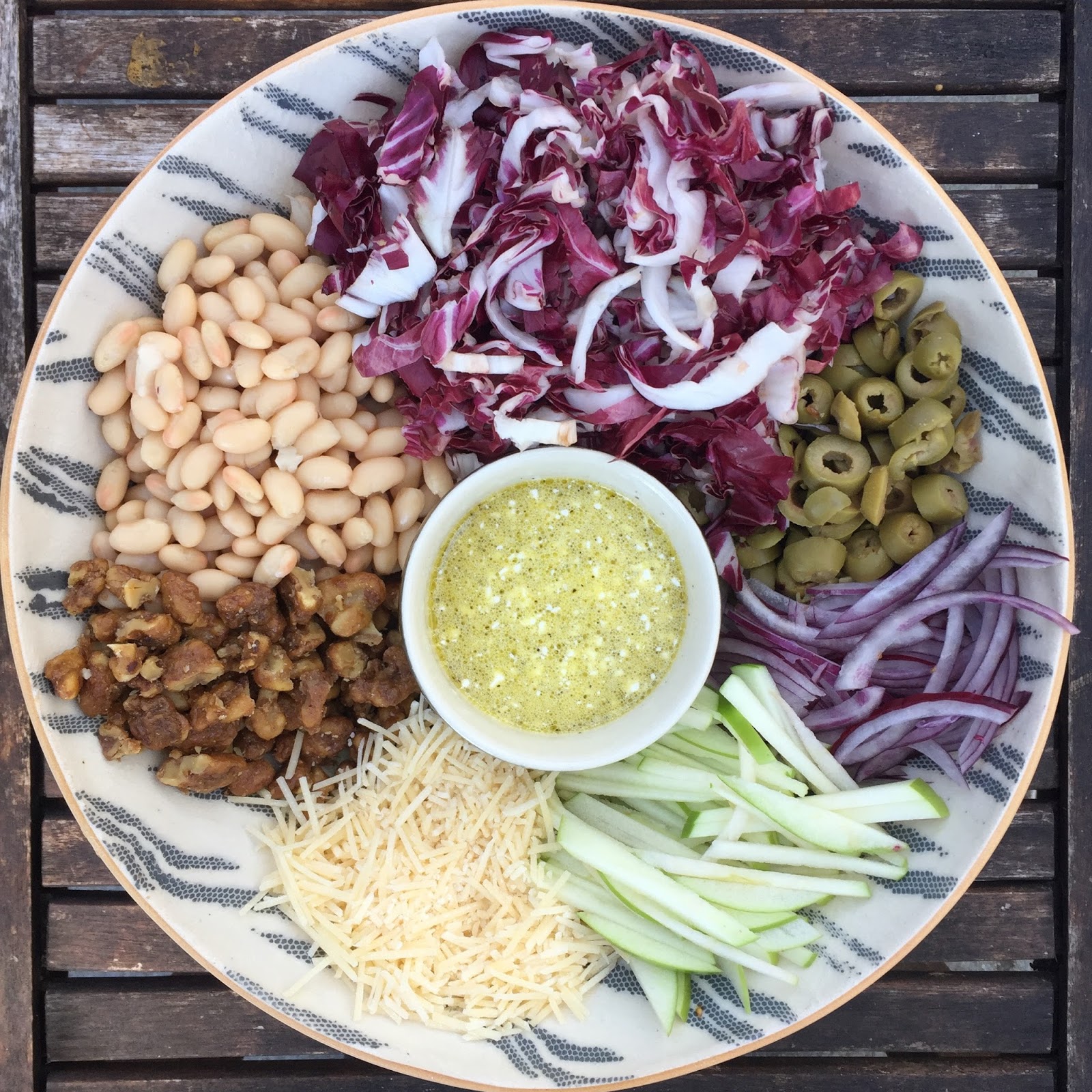 It is no secret round here that I love a salad. Like seriously some of my favorite meals are salads. I made this recently and let me tell you the flavor combination was amazing. Something about the bitterness of the radicchio, the tartness of the apples, the saltiness of the olives and sweetness of the candied walnuts was just the perfect combination. Such a light and refreshing salad but filling at the same time!