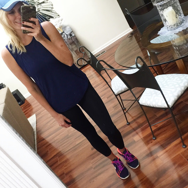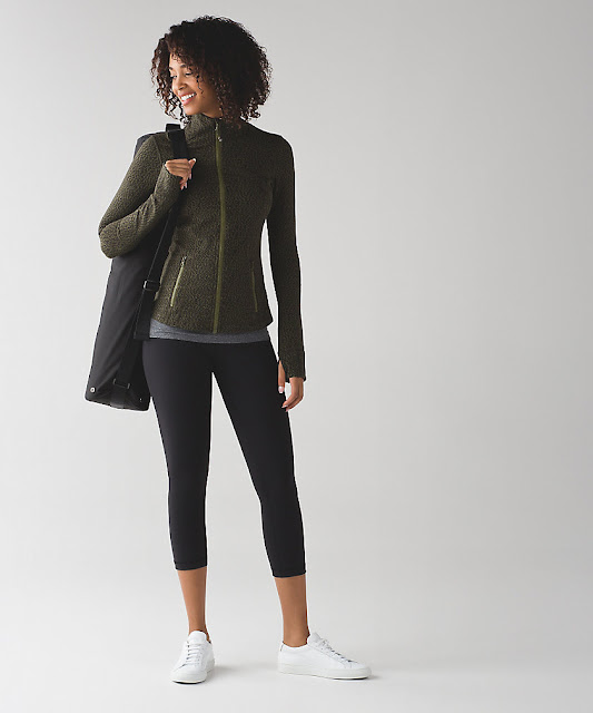 I am wearing it here in navy., paired with the black lulu pants and nikes above.