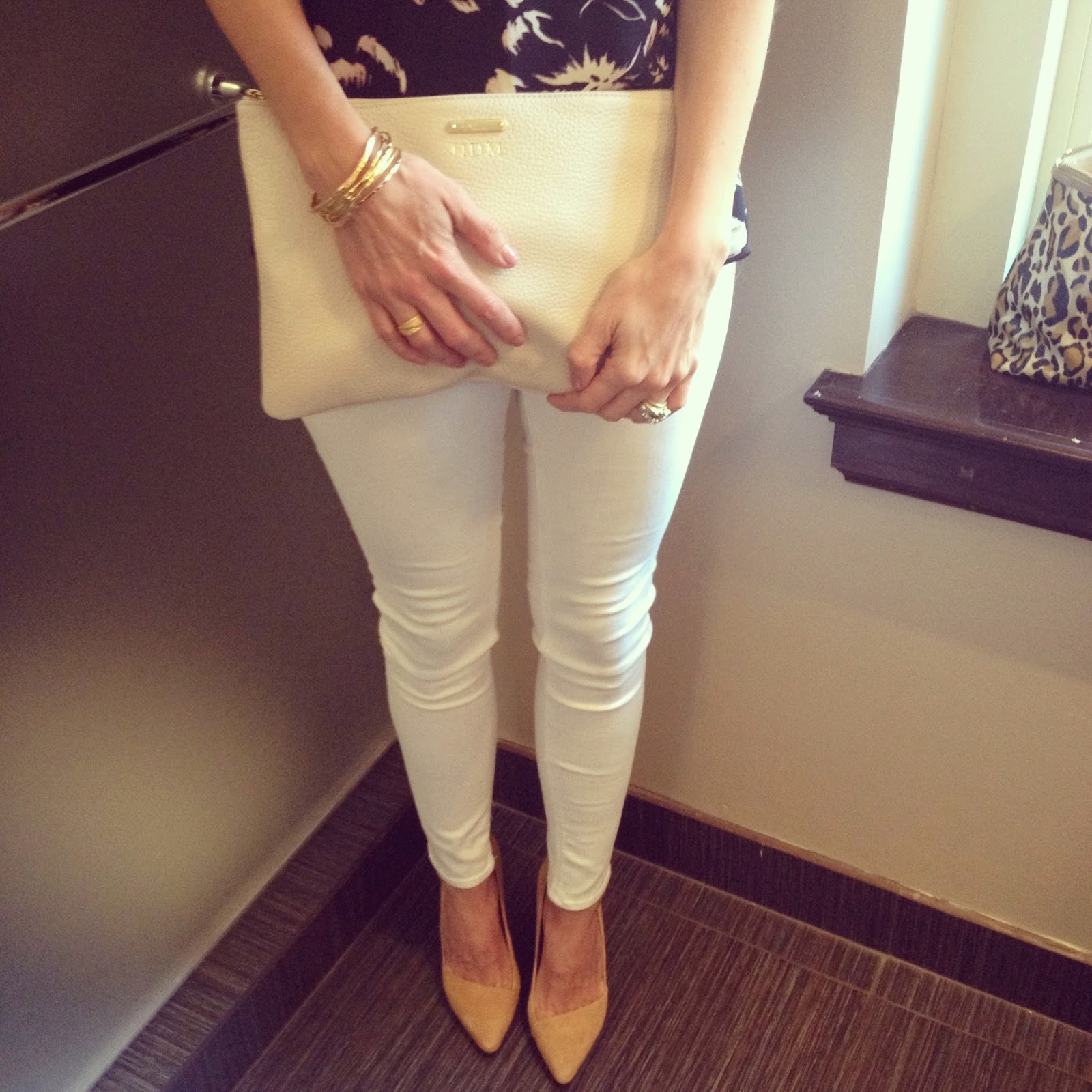 Rebecca Taylor Blouse old same style here and here (on sale) | Rag and Bone Skinny Jeans | Madewell Pumps | Gigi New York Uber Clutch