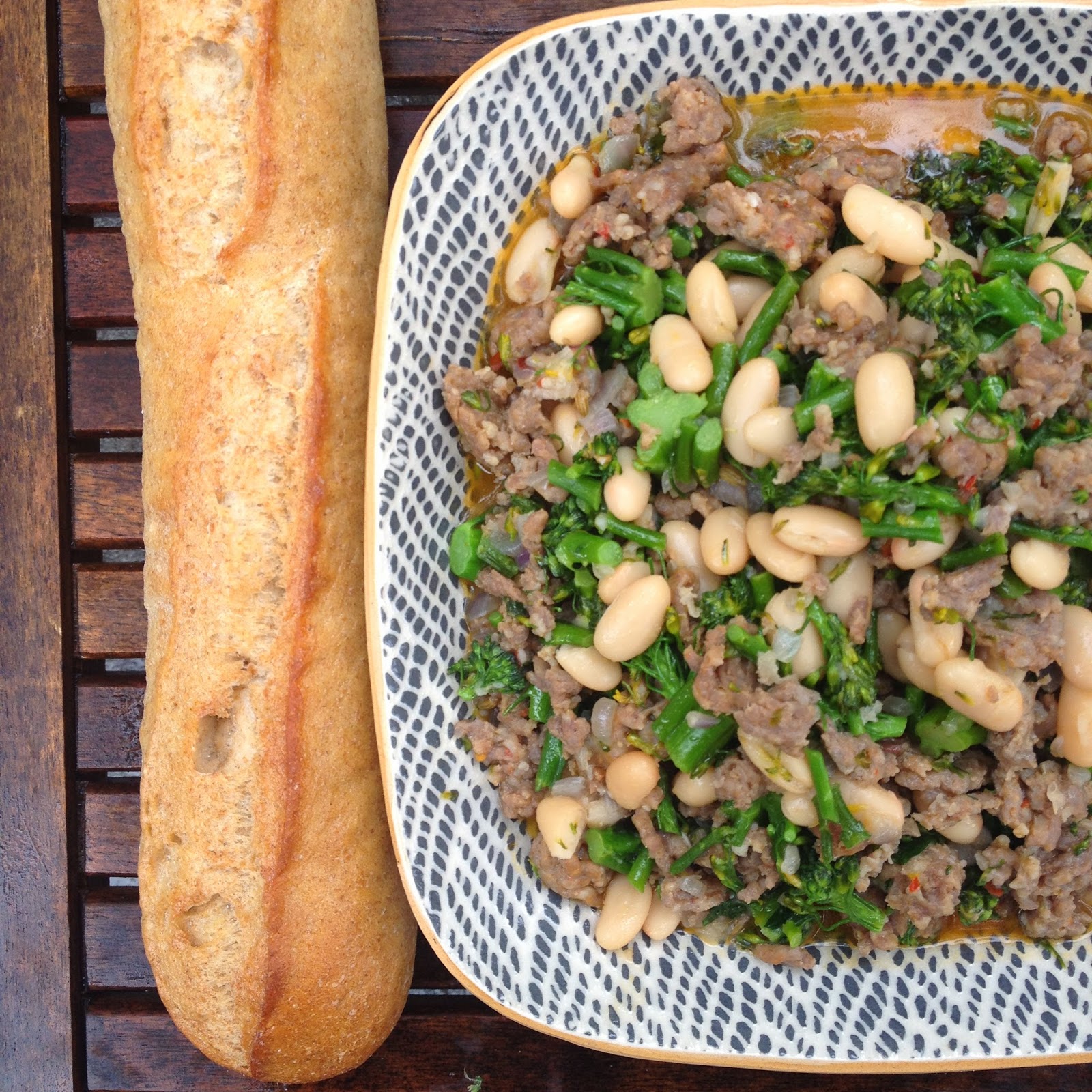 S A U S A G E + B R O C C O L I N I + W H I T E B E A N R A G U T