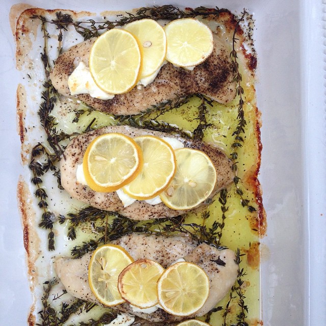 R O A S T C H I C K E N W I T H G O A T C H E E S E A N D L E M O N