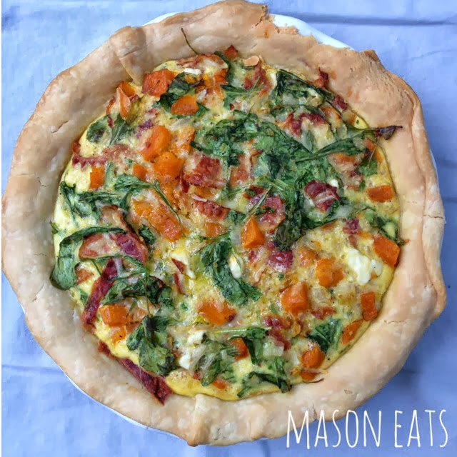 Quiches are my new go-to week night meal. Both of my kids will gobble up a quiche, veggies and all so I consider that a winning dish. You can whip a quiche together in 20 minutes tops and there are so many options. I make up a new one every few weeks. Last night we had chicken, roasted broccoli and smoked gouda.