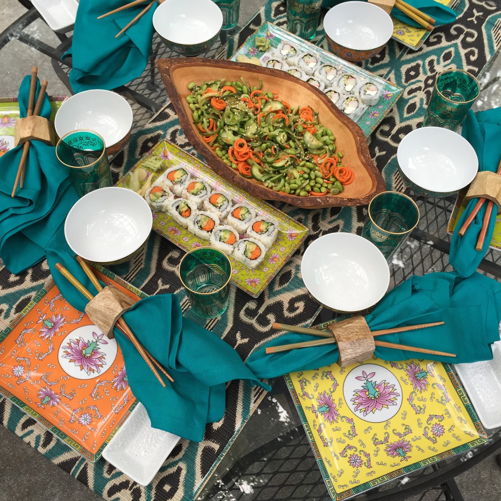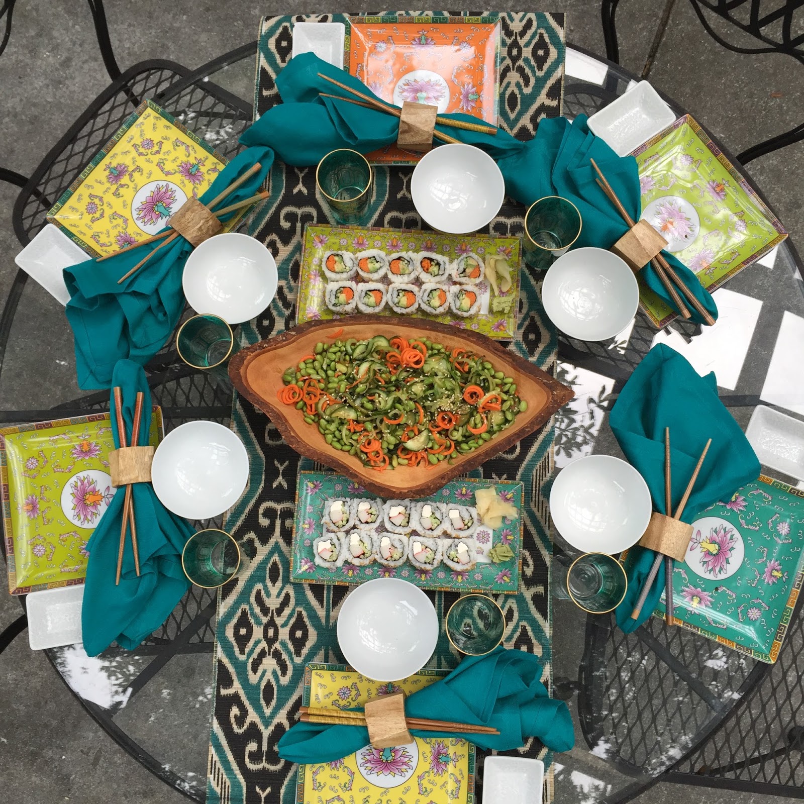 Beautiful tablescape! Looks like you all had so much fun and I love that the kids are the sushi too!