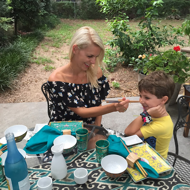 World Market has so many great plain everyday white dishes but I wanted something a little different. Since Sterling has been so into sushi lately and now Frances loves it too, I decided some Asian inspired dished would be fun.