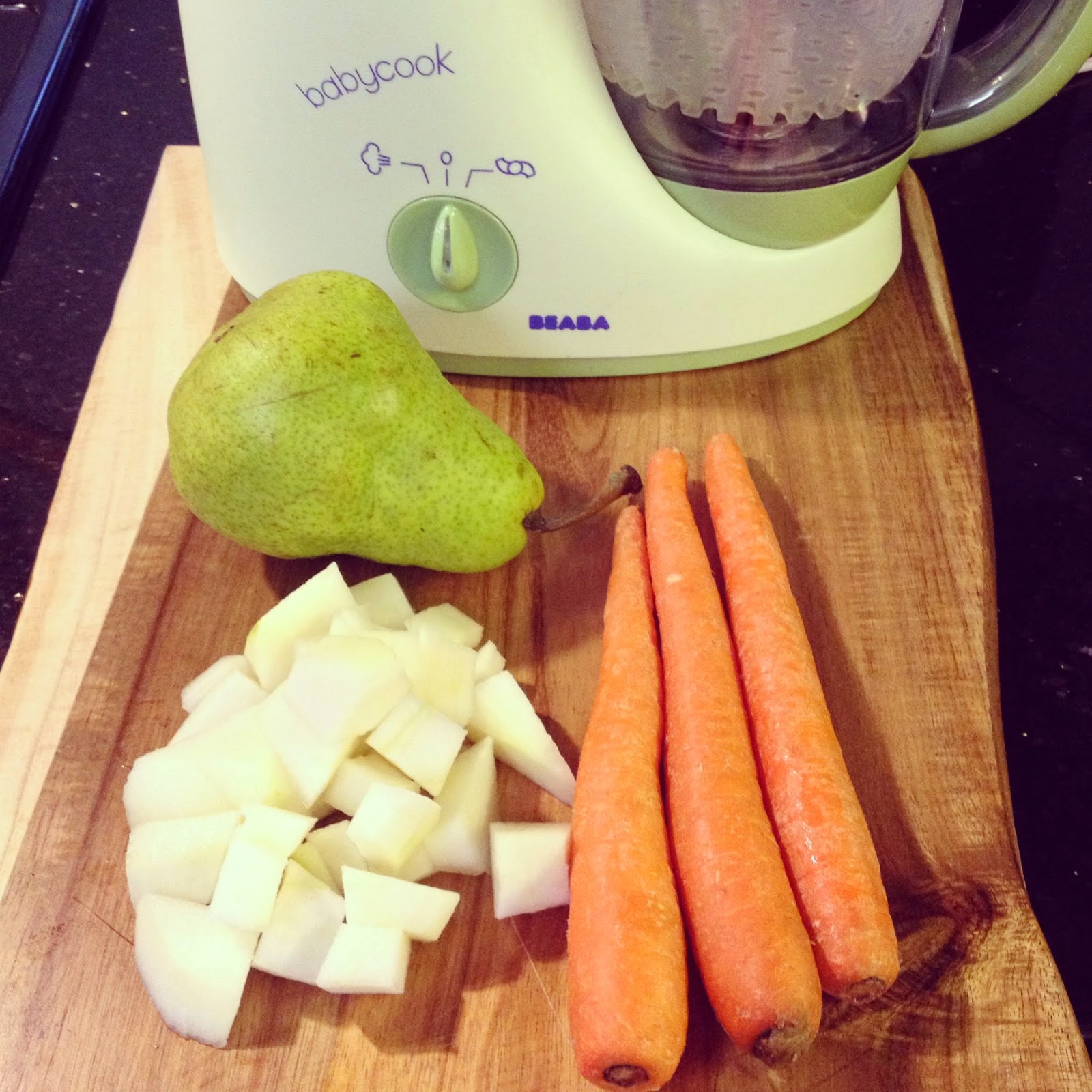 I am all about homemade baby food this time around thanks to my friend Melisas who created Giggle Bites. She really opened my eyes to how processed baby food even the organic kind is. I normally feed Frances Giggle Bites but ran out and had to buy the premade kind. The texture and color really turned me off, so I decided to bust out my Beaba which I love and make a few batches of homemade baby food. It is so easy to make and so much cheaper. Plus it is satisfying in a weird way. I kind of love making baby food:)