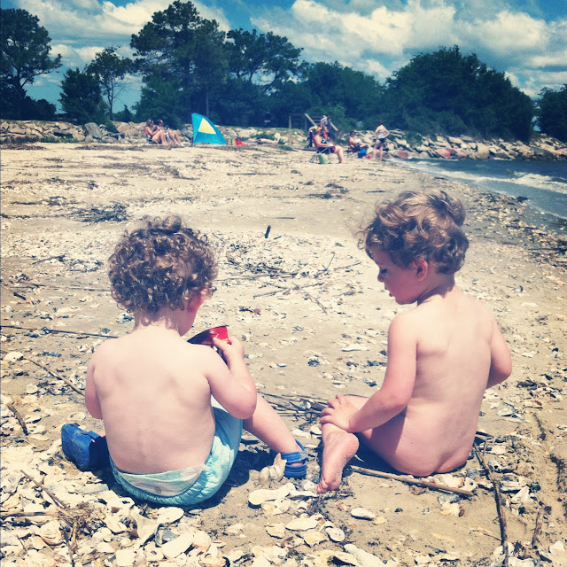 Sterling has decided he no longer needs to wear clothes when he is outside. It is becoming quite comical. Our friends have started referring to him as “Naked Boy.” Thinking it is probably a sign I should start potty training. This is him at the beach weekend after stripping off all his clothes.