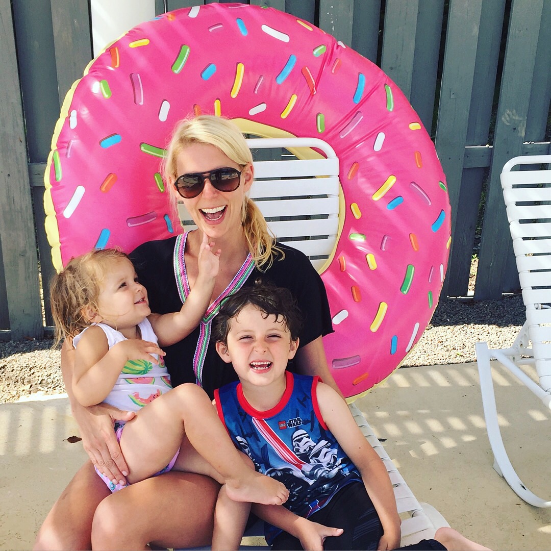 I wore the black short version to the pool yesterday:) Oh and that doughnut float is the kids favorite!