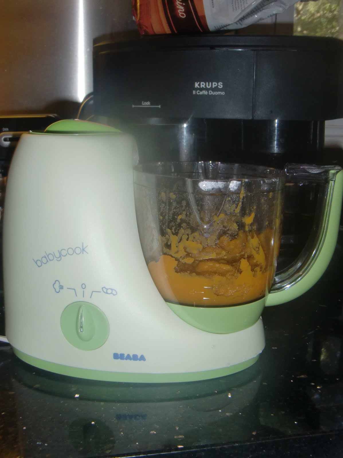Even before I got pregnant I dreamed of making my baby his/her own food. I love cooking so I thought it would be no different when I had a baby. My girlfriends were sweet enough to give me the Beaba BabyCook at my baby shower. Little did I know that after I had a baby, life would set in. Between changing diapers, making bottles, cleaning house and doing laundry I had no time to even think about making Sterling homemade baby food. So, I turned to pre-made baby food. I tried to make myself feel better by buying only organic brands like EarthsBest and Gerber. Yet my conscious still nagged at me. This weekend I finally busted out my BabyCook and was delighted to find how easy it is to make baby food. This contraption is genius. It steams your baby food and then purees it in 15 mins or less. Today I made my precious little man homemade sweet potatoes and peaches. I’m not saying I will be making homemade baby food everyday. However, it sure did feel good to buy local produce and make my baby the freshest and purest food he could have!