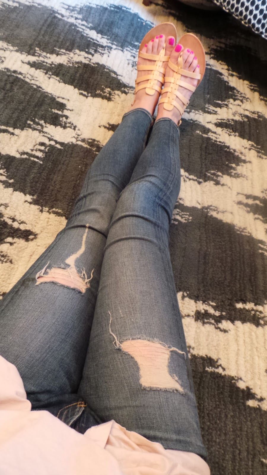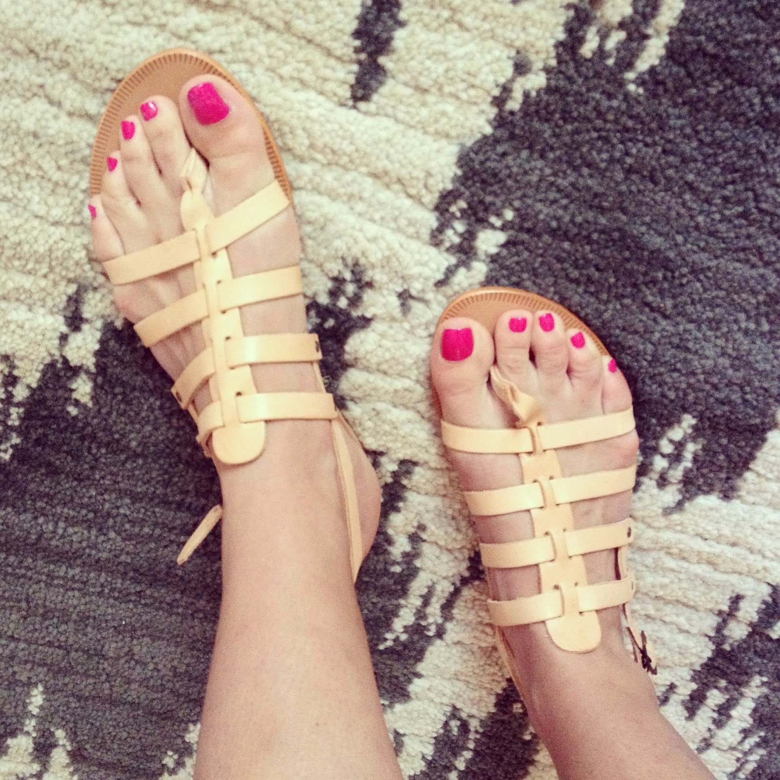 Such a cute rug! I love it! I love your sandals, too!