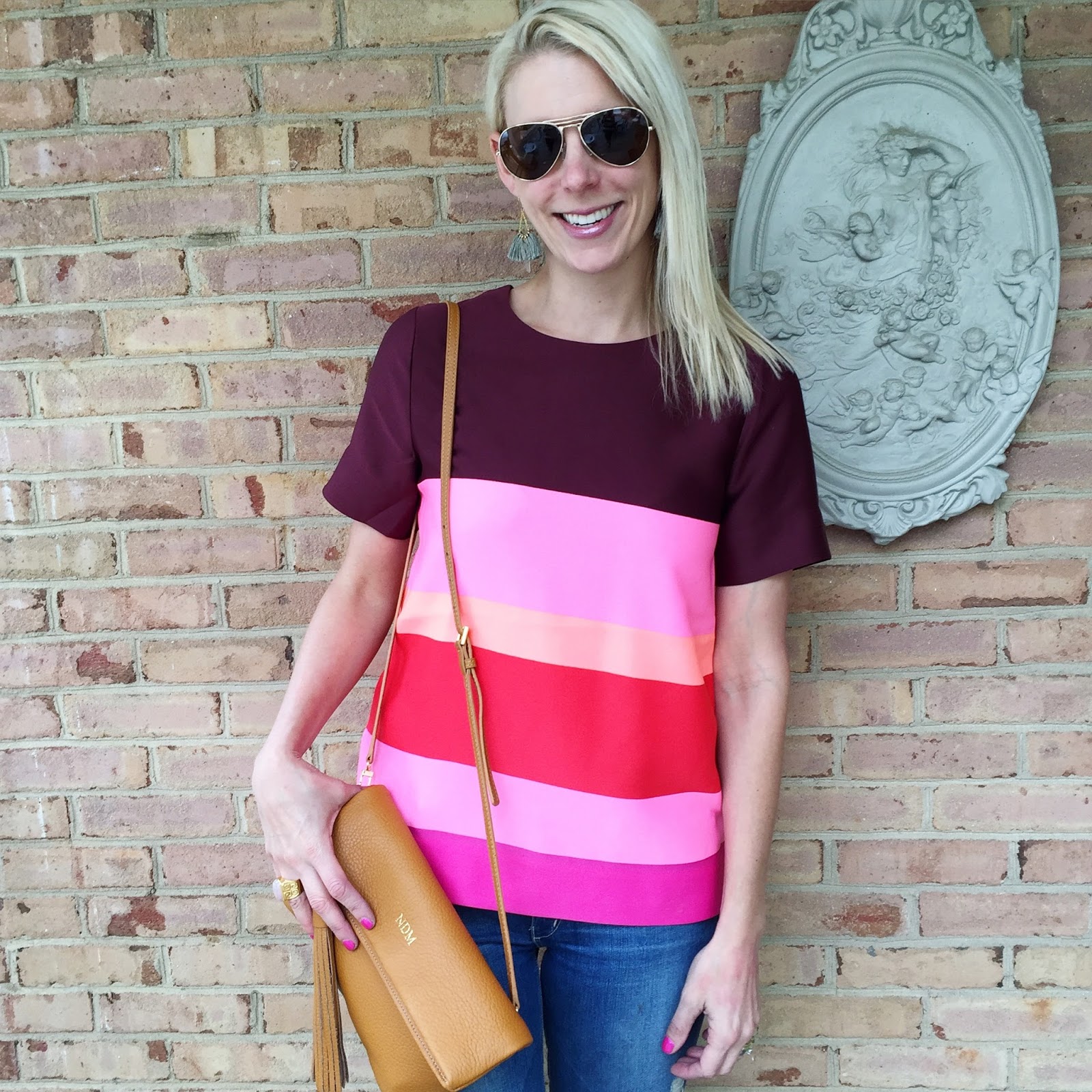 I picked up this blouse over the weekend. I saw it through the store window and fell in love with the bright neon stripes. As I have mentioned before Banana Republic is very hit or miss for me but I was pleasantly surprised with this blouse. Sizing wise it is pretty TTS. I tried on both the XS and small. The XS fit but it was just a touch snug in my hips so I went with a small. I don’t mind a loose boxy fit in a blouse. The material is very nice and thick. Plus the blouse is under $70.