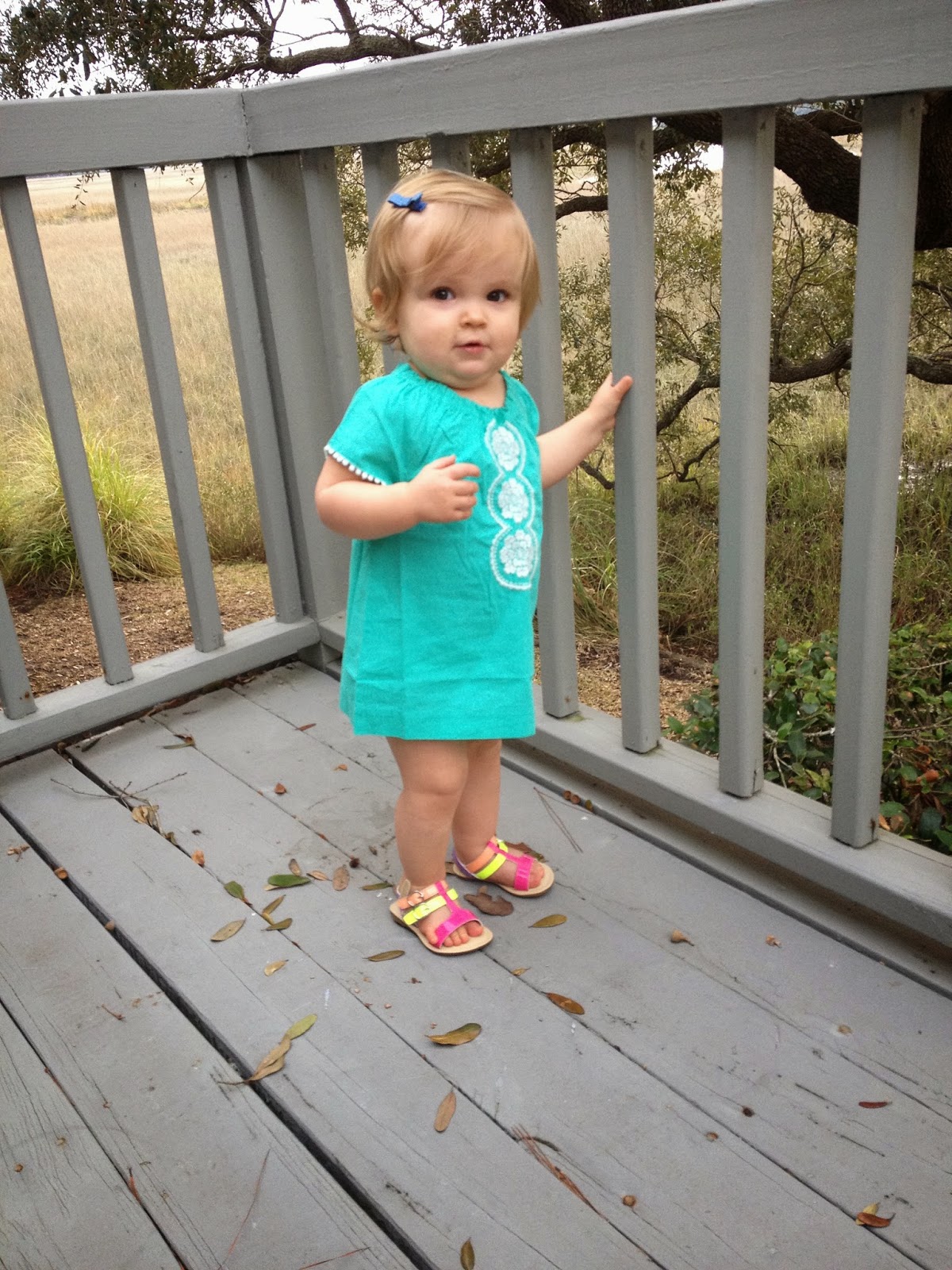 Since Frances Moon has no opinion yet on clothes or shoes I still get get to choose:) I fell in love with these neon sandals and Pom Pom Tunic.