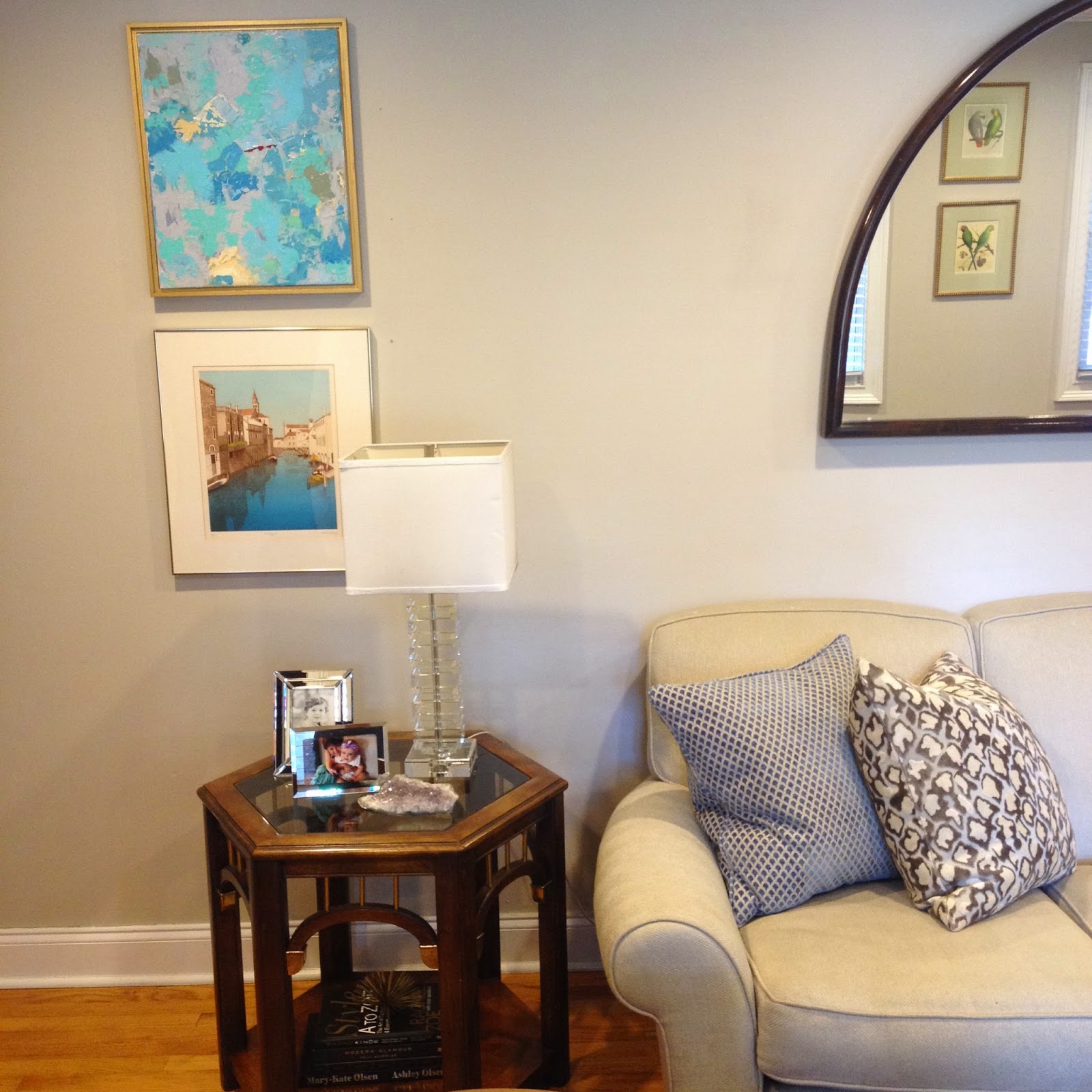 So fun to see a peek into your home! I love all the little decorative accessories and that abstract piece of art above the end table!