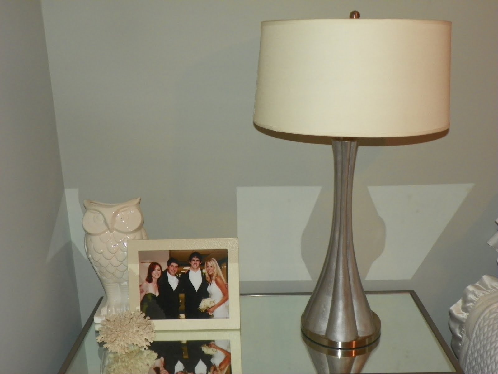 I am lusting for your mirrored nightstand!! That would be perfect for my room. That is also a great shade on the wall!