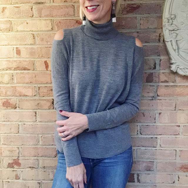 I also packed this open shoulder sweater. Now on sale too. I am wearing a small.