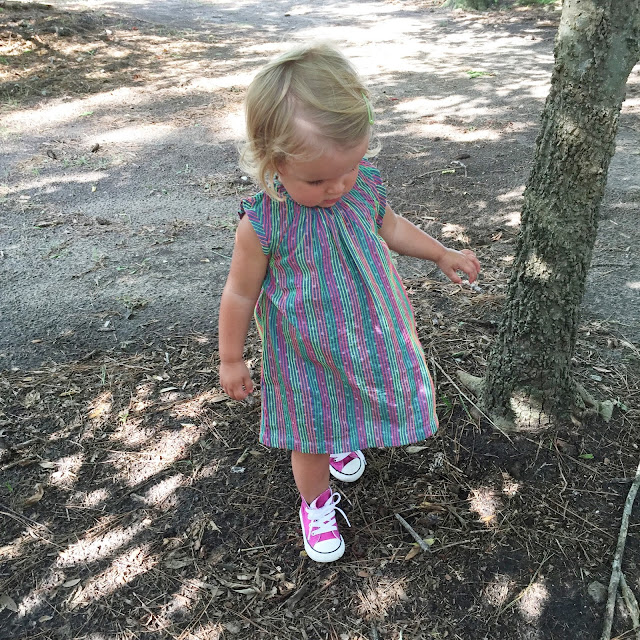 Frances Moon’s dress is even cuter in person. The colors are even more vibrant than they show up in the photos. She is wearing the size 24 months.