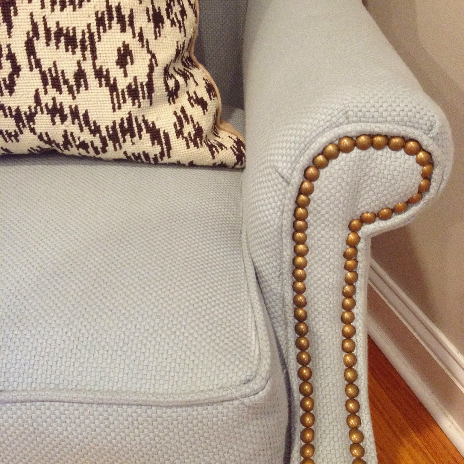 I got back my wingback chairs from the Upholster and they look amazing!! I am working on taking some pictures of the den for a home tour and I will show the full chairs then but here is a peak!