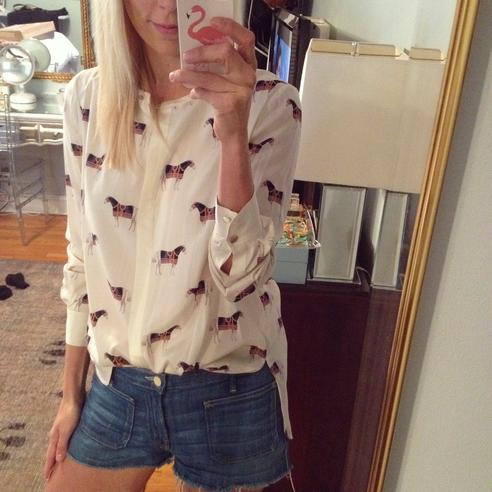 My horse blouse that I ordered from the Tory Burch sale came in the mail and I have to say I love it!! Sometimes her clothes can fit my body funny but this blouse fit perfectly and I just adore the horse print. I will be wearing this often this Fall.