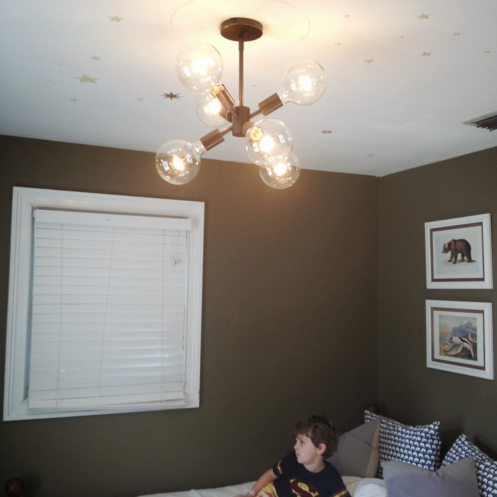 I ordered that same pendant light in Sterling's room for our hallway. It looks so great in his room!!