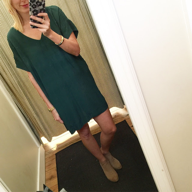 I stopped in Madewell this week and found the cutest shift dress. You all know my love for a shift dress:) This one fits great and I love the green color. It also comes in navy. I am wearing the small.
