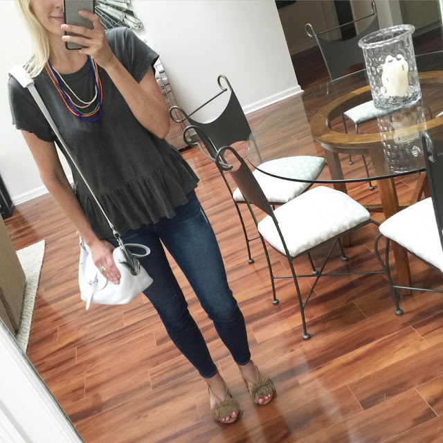 Tee Shirt (wearing size 1) + Necklaces + Jeans (on sale ) + Purse same style different color + Shoes (use code BRTAKE40 to save 40%)