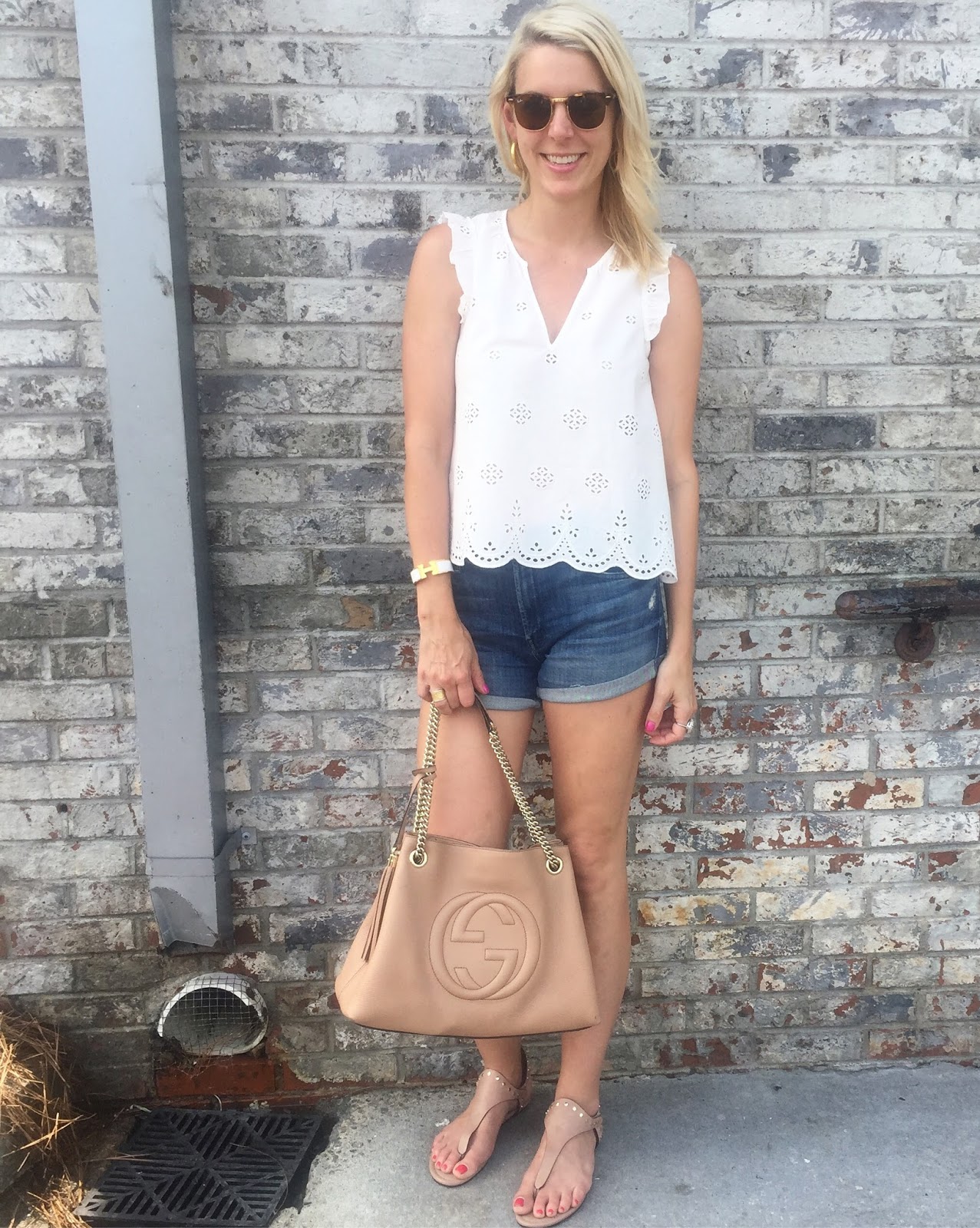 Eyelet Blouse | Jean Shorts | Sunglasses | Sandals
