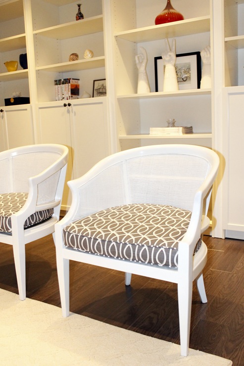 Yay!!! You know i just got two barrel back cane chairs too! Mine are a painted cream color and the tufted upholstery is in great condition but I know eventually I'm going to have mine redone too. Love all your choices. I'm a big fan of them in white. That way you can work in the navy velvet or another dark fabric and it will still pop! Always a fan of that kelly wearstler fabric!