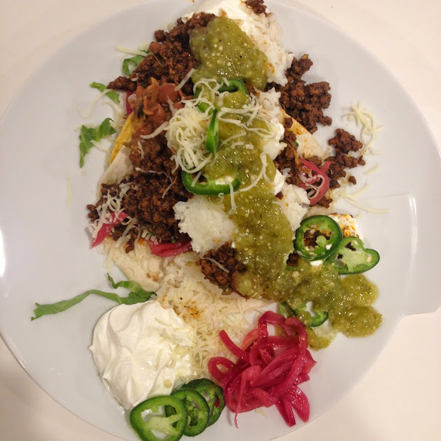 Plated tacos. I served corn and flour shells and let everyone assemble their tacos who they like them.