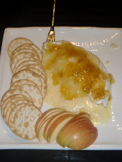I made some brie with fig preserves and apples and crackers to go with our wine!