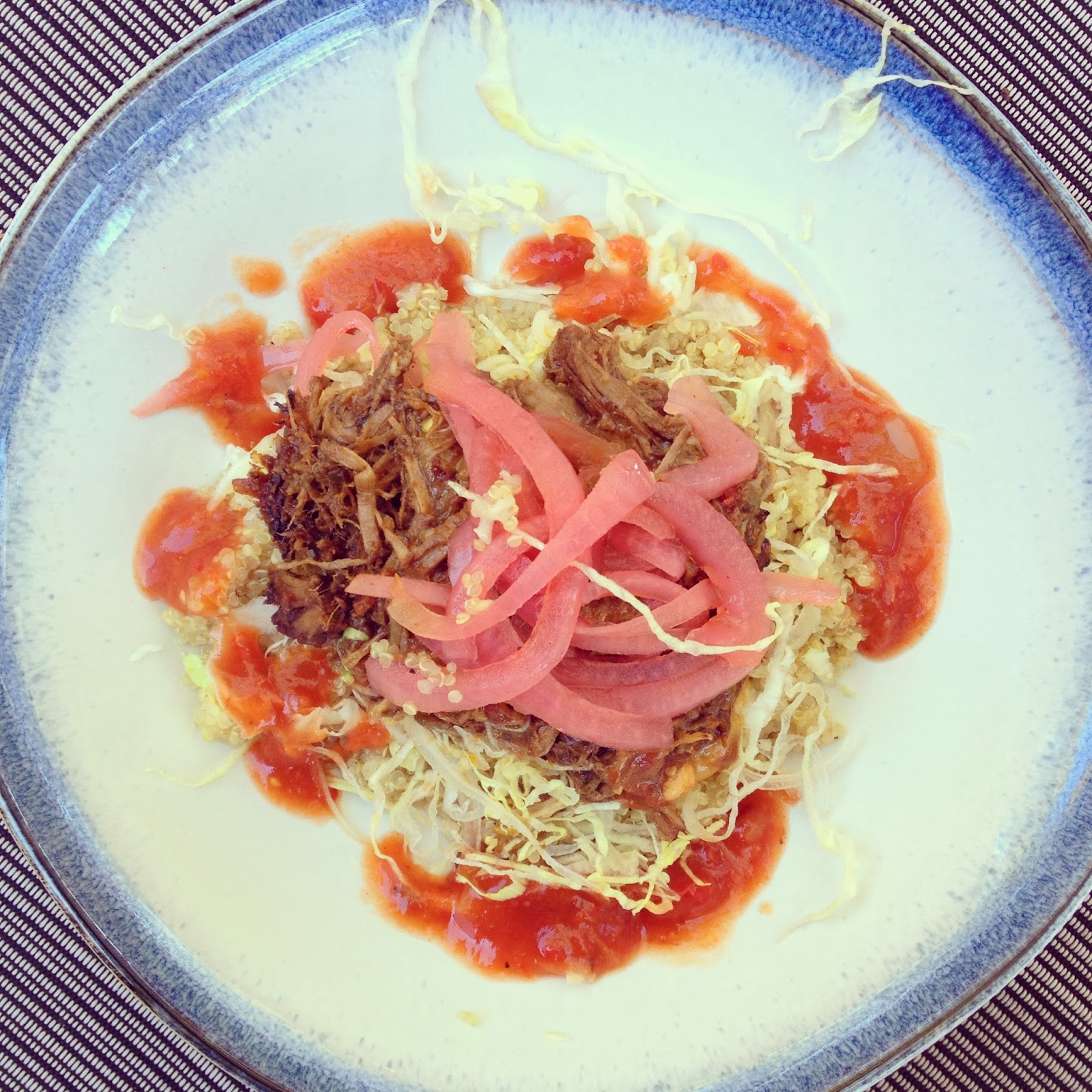 We made our Braised Beef Tacos (recipe here) for our company Saturday night and they amazing again. I used the leftover beef the next day to make a Braised Beef Quinoa bowl.
