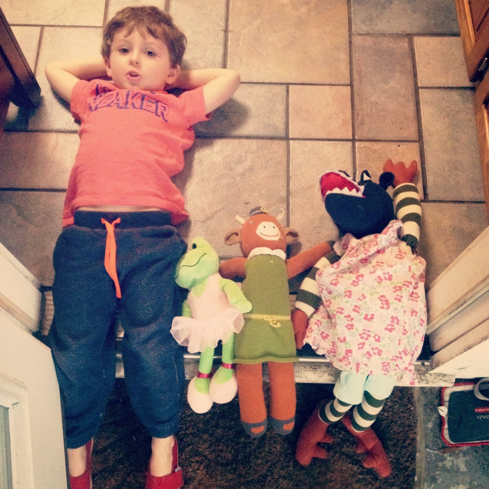 This weekend Sterling said to me ” I wish God would make Rufus real.” I love his sweet soul. Rufus goes everywhere with us and gets an outfit change each morning from Frances’s closet. Rufus is one well dressed monster.
