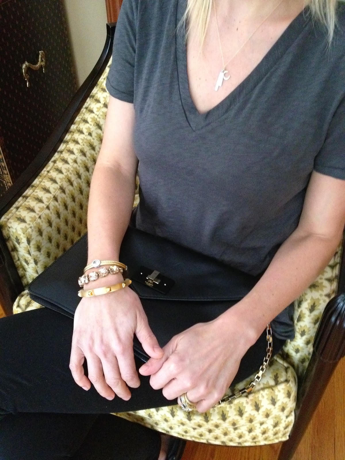 Behold, my new favorite bracelet combo. These three have not left my arms since I was in Charlotte. Wish I had painted my nails after looking at this picture:)