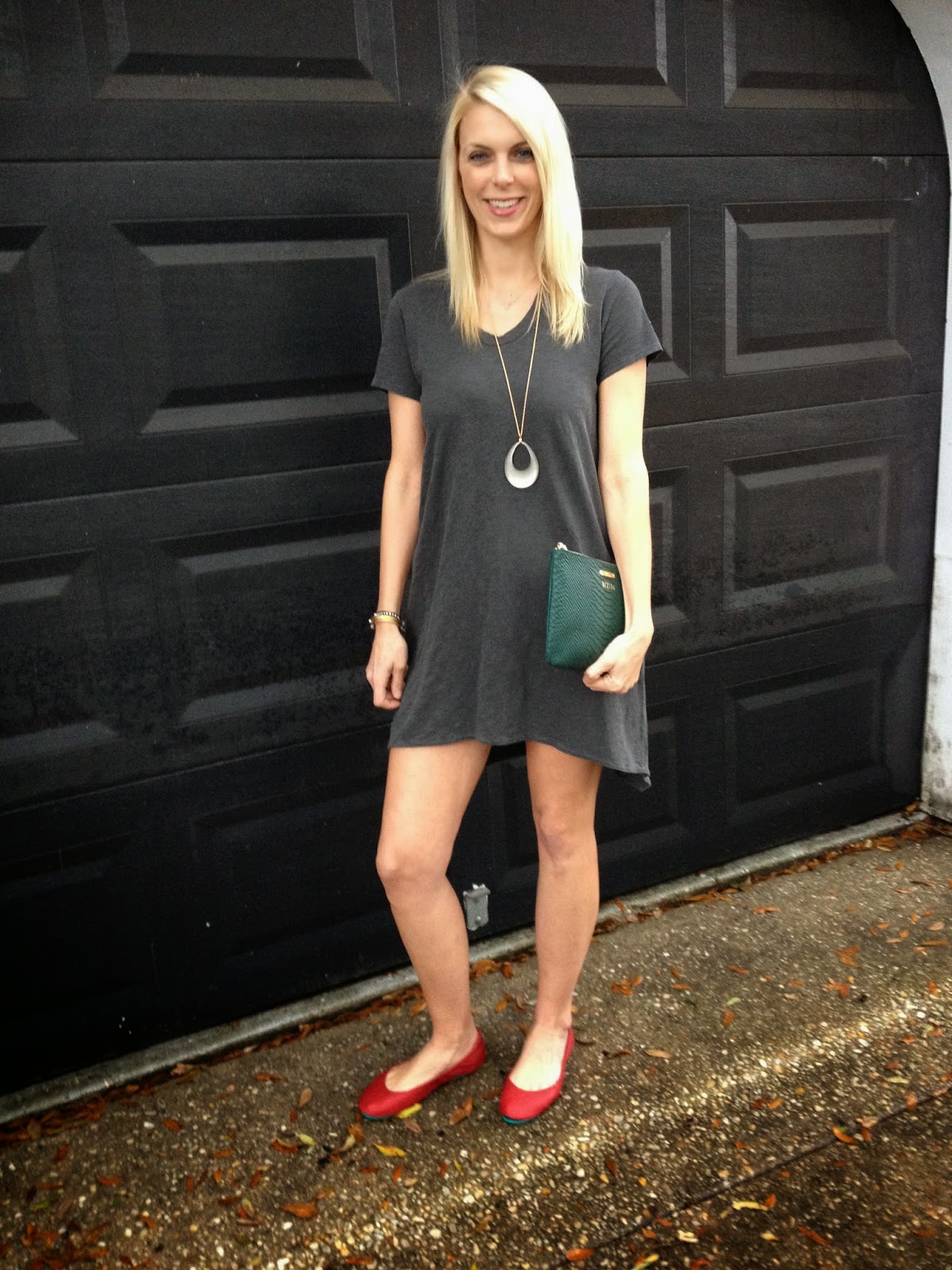 This is such an easy outfit to dress up or down. Throw on some flip flops and lose the necklace for a more dressed down look! I promise you will live in this tee shirt dress!