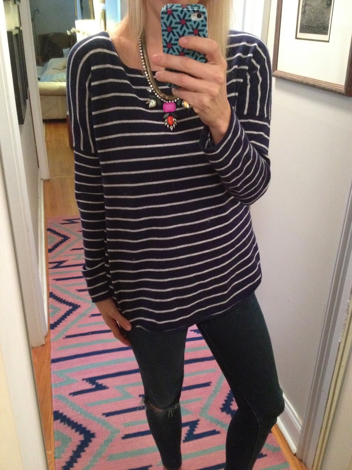 They do huff and puff about pictures right? Maybe because I always say "wait one more I look weird in this one". Love those booties! Also the rug in selfie photo! Such a pretty pop of color 🙂