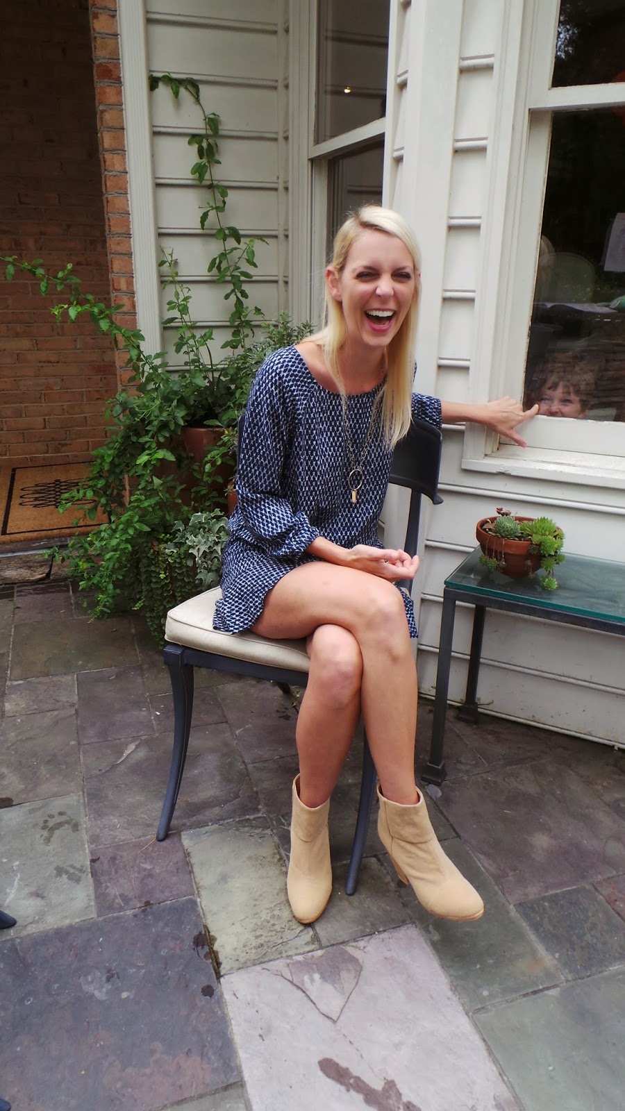 Love the dress with the booties!! I'm obsessed with that necklace and think I need one after baby #2 is here