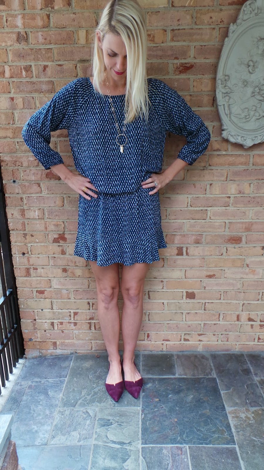 Soft Joie Dress | Vince Camuto Flats | ESN Custom Necklace