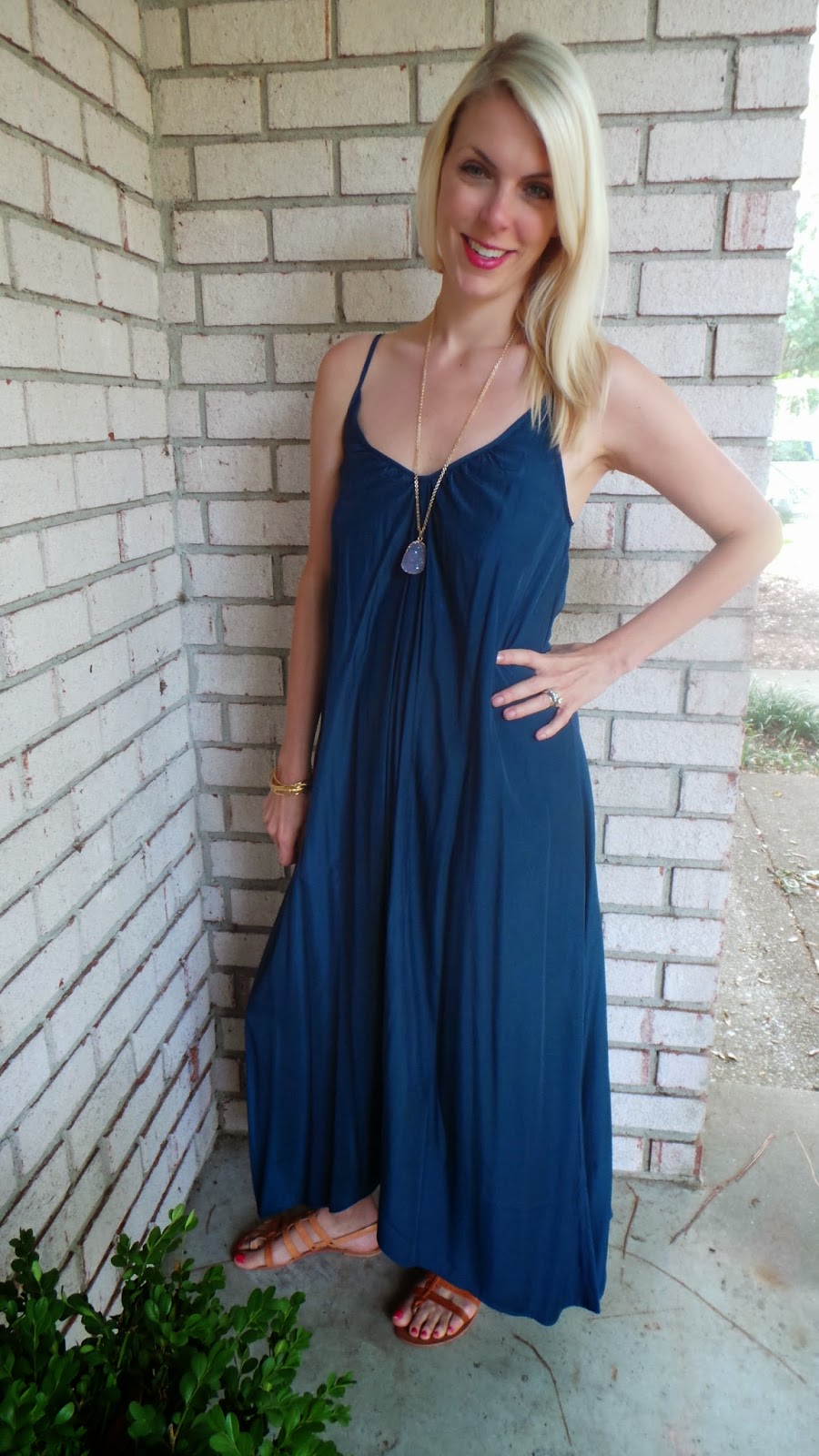 I just love a maxi dress in the Summer. It is such an easy outfit to toss on. One piece and you are dressed and ready to go. I actually bought this maxi dress last Summer while I was pregnant because I needed something to fit my growing belly for a few events. I loved it pregnant and I actually love it just as much not pregnant. I own it in two colors (navy + green) and have been wearing them non-stop. Best part the dress is under $100! It is a dress you can toss on with flats for a casual look or easily dress up, it is very versatile.